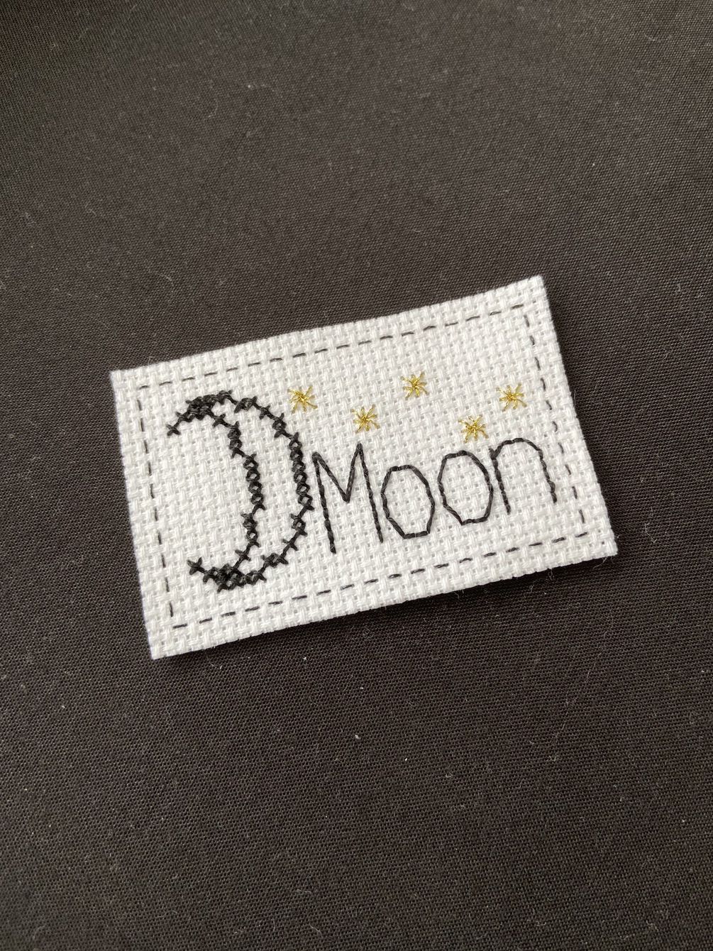 A cross stitch pattern of the astrological symbol of the moon. Includes a small description of the significance of the moon in astrology.